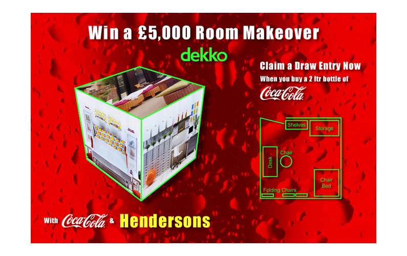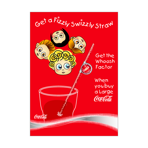 Details: Graphics for Coca-Cola's drinks unit, whoosher drinking straw promotion, mobile text competition, Dekko room make-over competition.