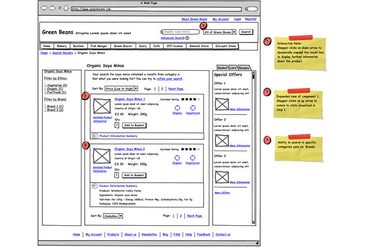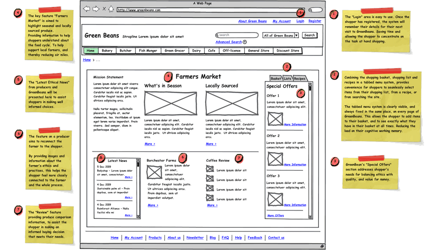 Details: GreenBeans is a new online supermarket with a commitment in sustainability ethos. The website aims to support shoppers in making purchasing decisions based on their ethical and lifestyle priorities. The concept needs to be designed to be flexible so it can grow with the business and client base.