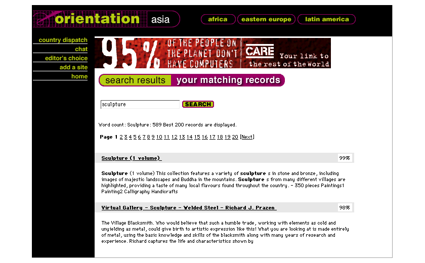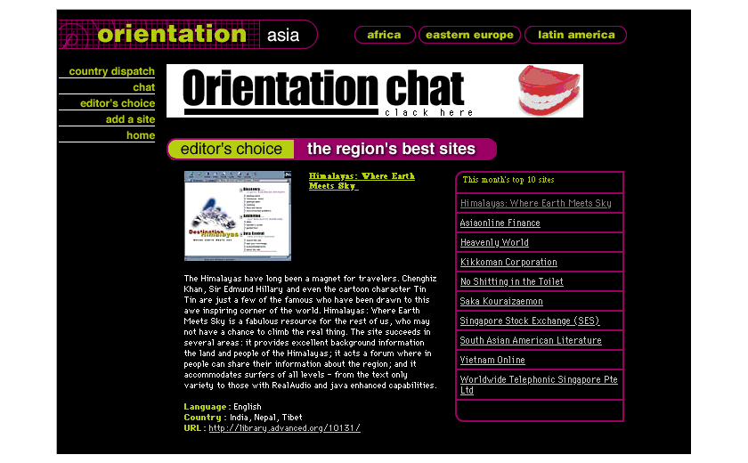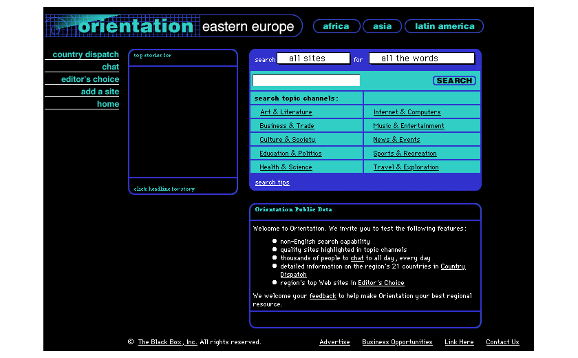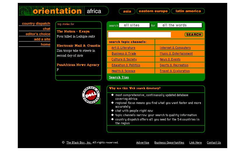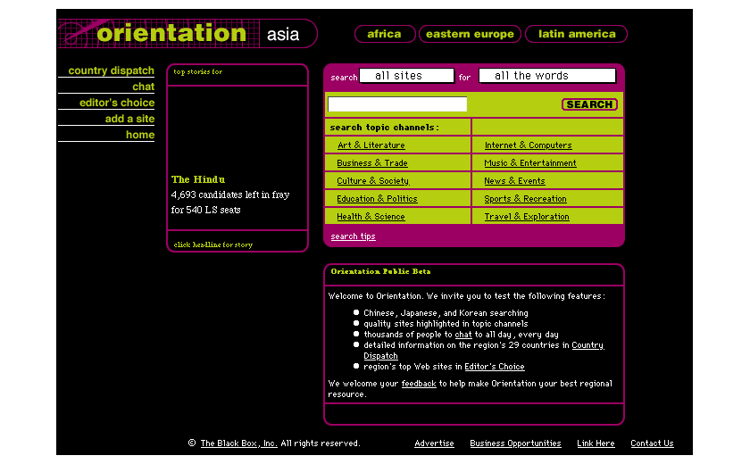Details: A global network of localised web portals, for regions outside of North America and Western Europe. With portals in 35 countries and 17 languages, covering Asia, Africa, the Middle East, Central & Eastern Europe, Latin America, the Caribbean, Australia, New Zealand and the Pacific Islands.